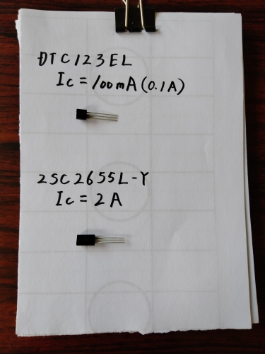 先ほどの測定から200mAの電流が流れても問題ないトランジスタを使う必要があります。