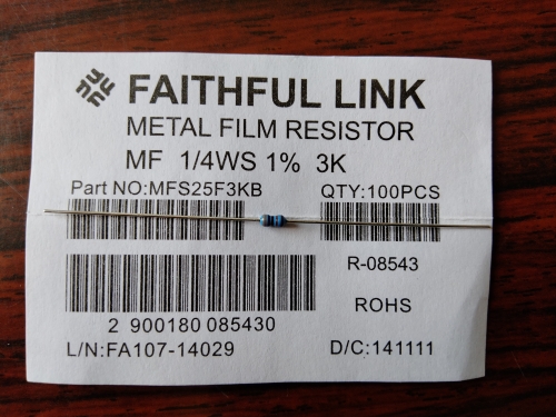 近い抵抗を探したところ3kΩがあったので、これを使います。