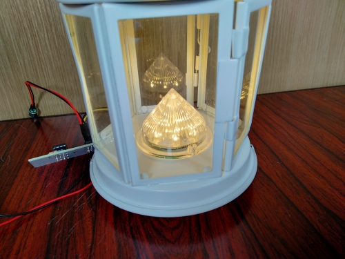 ランタンから黄色と黒の線が出ていますが、これはLEDに接続されているので、電池をつなぐと光ります。