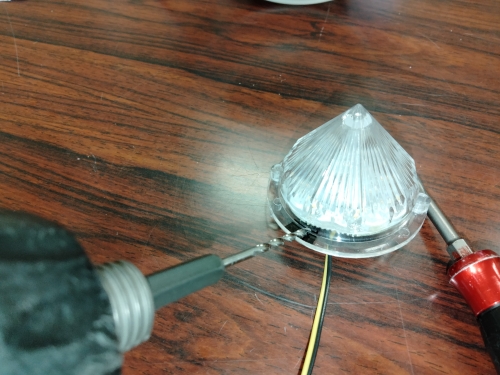 ライト部分に穴を開けて、そこに電線を通せばいいのでは?と思いました。