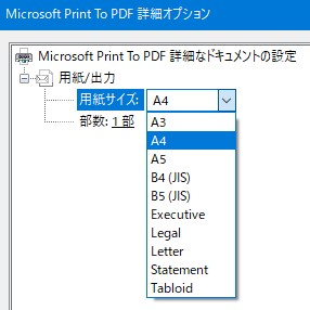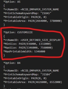 Microsoft Print to PDFの用紙選択を見ると、以前はA4しか選べなかった(気がする)けど増えてます。この用紙リストはgdpファイルとpdc.xmlの中をよ~~~く見れば、なんとなく分かります。ここからがよくわからないところですが、https://franklinheath.co.uk/2015/08/29/custom-page-sizes-for-Microsoft-print-to-pdf/に・・・