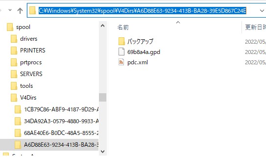 PrintQueueV4driverDirectoryがあって、その中にGUID値ってのがあるから、ちゃーんと覚えておくんだよ。